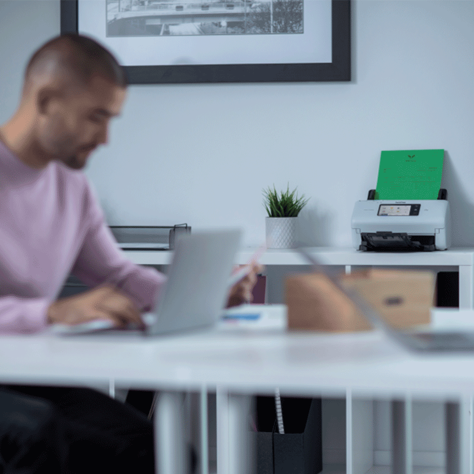 ADS-4700W został zaprojektowany tak, aby umożliwić firmom uproszczenie złożonych przepływów pracy lub procesów operacyjnych. Dzięki temu Twoje dokumenty będą bezpiecznie przechowywane, a udostępnianie i współdzielenie ich z pracownikami stanie się łatwiejsze i niezależne od tego, czy pracują oni z domu, czy z biura.